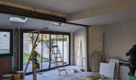 Les travaux de plâtrerie ont commencé et l'espace prend forme. Le réaménagement partiel de cette échoppe bordelaise a été conçu par RESSAC ARCHITECTURE et l'ATELIER DES POSSIBLES. Pour en savoir plus sur cette réalisation, c'est par ici! Pour plus d'information sur ce type de projet, contactez votre cabinet d'architecte à Bordeaux.