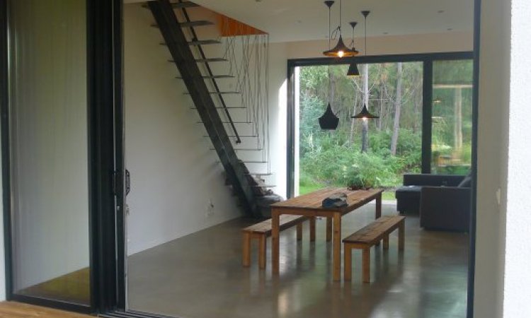 RESSAC ARCHITECTURE, bien avant de d'installer comme architecte indépendante, a conçu et construit cette maison individuelle à Le Porge, près du bassin d'Arcachon.